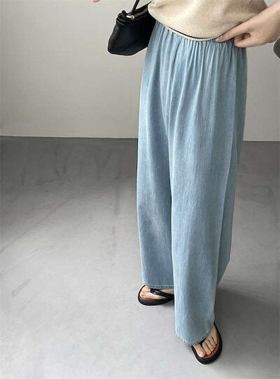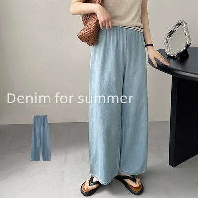 ワイドパンツ デニム レディース パンツ ボトムス ロング 春夏 薄手 涼しい コットン 綿 ワイド ハイウエスト フレアパンツ ガチョウパンツ リラックスパンツ デニムパンツ ルームパンツ ウエスト