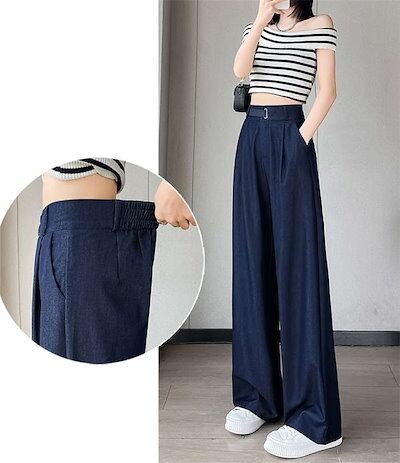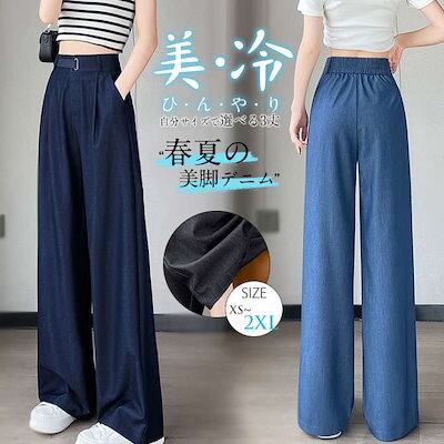 ワイドパンツ 接触冷感 デニム レディース パンツ 冷感 夏 春 秋 UVカット ワイド ボトムス ズボン ロングパンツ 薄手 夏デニム ハイウエスト ストレッチ ポケット ゆったり テンセル ひんや