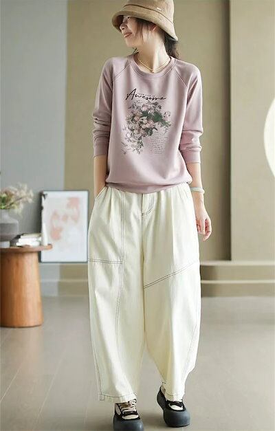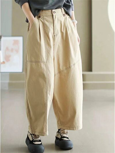 バルーンパンツ ワイドパンツ サルエルパンツ レディース パンツ ボトムス 綿 ワイド 9分丈 無地 夏服 春夏 ロング丈 美脚 丸み おしゃれ 着やせ リラックス ゆったり ウエストゴム おしゃれ