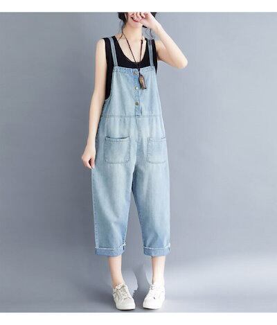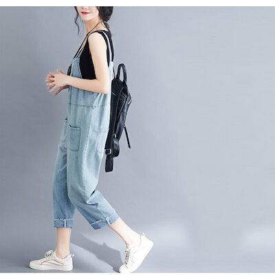 サロペット デニム 大きいサイズ レディース オールインワン パンツ ワイド オーバーオール デニムパンツ ワイドパンツ ズボン 春 秋 夏 ボトムス 9分丈 デニムサロペット 可愛い きれいめ カジ