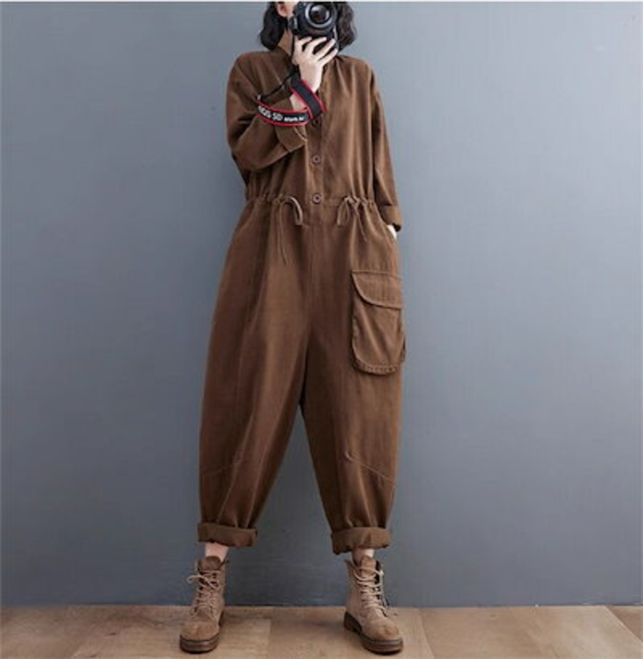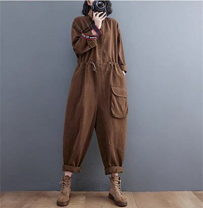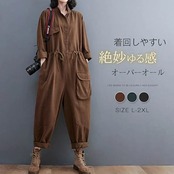 オールインワン サロペット つなぎ レディース 春 秋 大きいサイズ パンツドレス 連体服 無地 オーバーオール オールインワン 長袖 ロングパンツ マキシ丈 ツナギ 古着風 マタニティ ゆったり目