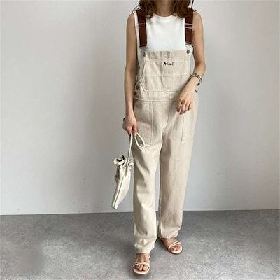 サロペット レディース 春 夏 オールインワン パンツ オーバーオール 大きいサイズ カジュアル ボトムス ツイル サロペットパンツ ロング 体型カバー 春秋 ロングパンツ オールシーズン 体型カバ