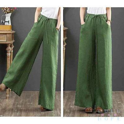 早めに購入して早めに楽しむ ガウチョパンツ ワイドパンツ レディース ボトムス ロングパンツ ロング 美脚 綿麻ワイドパンツ リネン風 ボトムス ウエストゴム ロングパンツ ベルトループ お