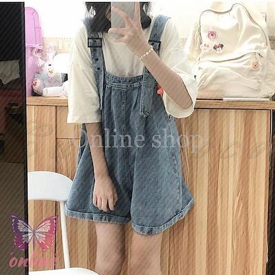 安価デニムサロペット レディース オーバーオール オールインワン ショートパンツ ワイドパンツ 短パン ガウチョパンツ 春 夏 秋 カジュアル きれいめ