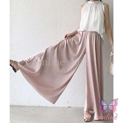早めに購入して早めに楽しむ ワイドパンツ レディース フレアパンツ 春 夏 ロング丈 ゆったり ロングパンツ ガウチョパンツ ハイウエスト スカーチョ 体型カバー ふんわり