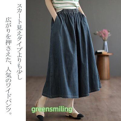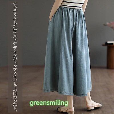 早めに購入して早めに楽しむ デニムパンツ デニム パンツ レディース ワイドパンツ ガウチョパンツ 大きいサイズ ウエストゴム フレア フレアパンツ きれいめ ポケット 春夏 7分丈