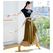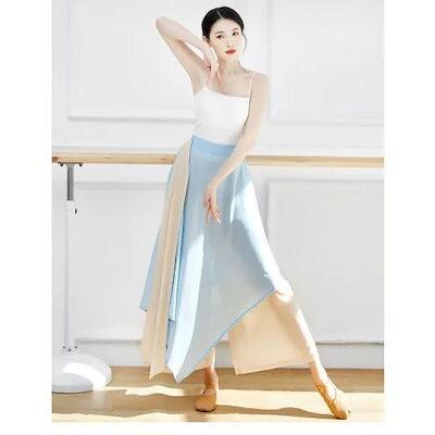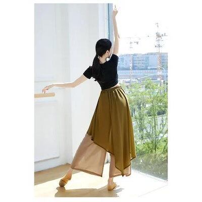 安価パンツ レディース ダンス衣装 ボトムス ワイドパンツ ダンスパンツ 民族ダンス 練習着 リボン ガウチョパンツ 配色 スカート付き シフォン エスニック
