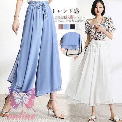 安価ガウチョパンツ ワイドパンツ レディース シフォン 裾プリーツ フレアパンツ ガウチョ パンツ ボトムス スカーチョ ゆったり シフォンガウチョパンツ