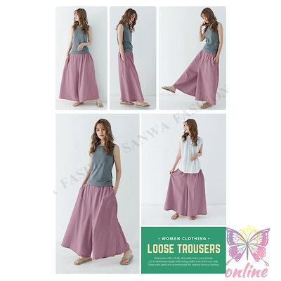 新しい夏のスタイル ワイドパンツ レディース きれいめ 春 秋 黒 9分丈 ガウチョパンツ ロング コットン ボトムス 体型カバー 無地 ナチュラル おしゃれ ガウチョパンツ 夏