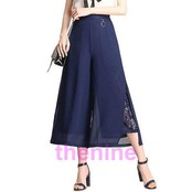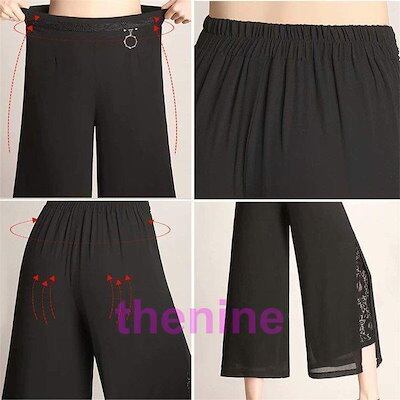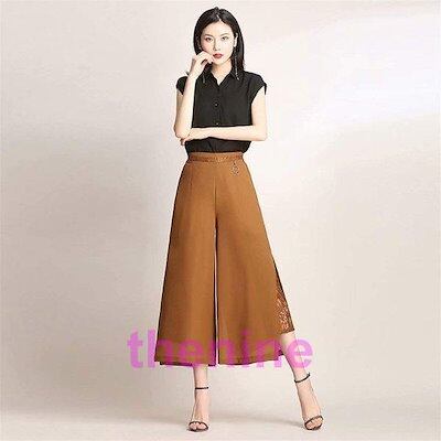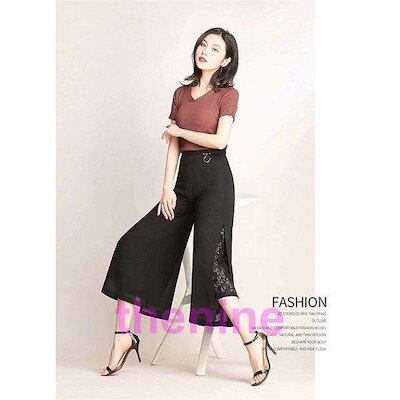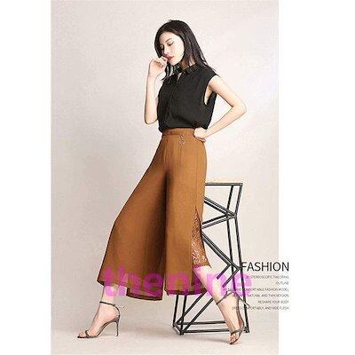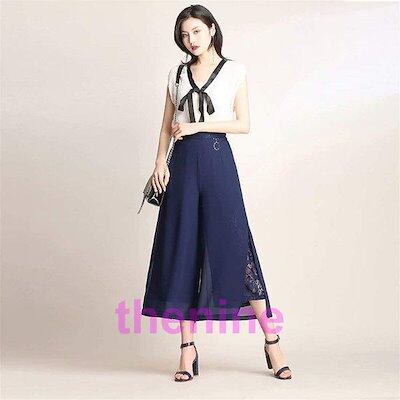 早めに購入して早めに楽しむ シフォン ワイドパンツ ガウチョ パンツ ズボン レディース 夏 サイドレース スリット オフィス カジュアル きれいめ 通勤 シンプル 美脚