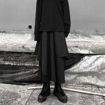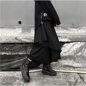 新しい夏のスタイル ワイドパンツ スカート風 レディース ガウチョ パンツ ゆったり 暗黒系 二重 不規則 かっこいい