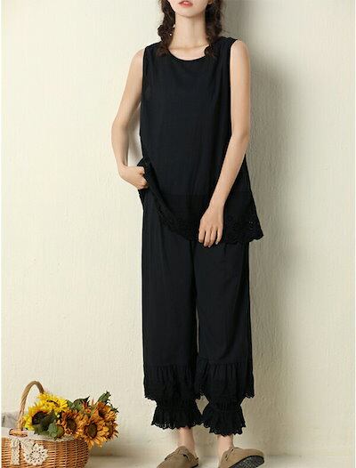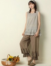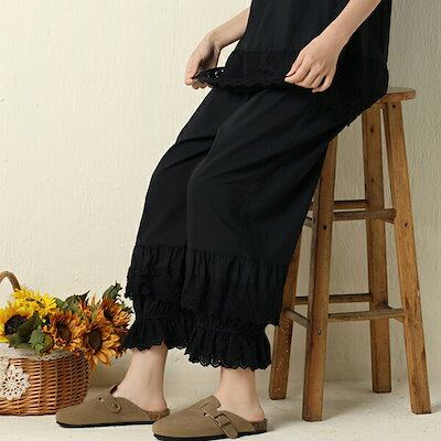 ペチコートペチパンツ ボトムス ペチコート パンツ ナチュラル シンプル 体型カバー 重ね着 カジュアル レディース 服 大人 ゆったり ワイドパンツ レディース 裾レース フリル ガウチョパンツ リ