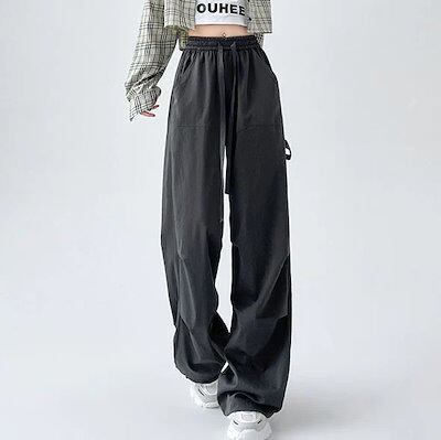 カジュアルパンツ スウェットパンツ ゆったりしたズボン 春夏の女性 スリムでカジュアルなハイウエストワイドパンツオーバーオール レディース ホワイトワークパンツ