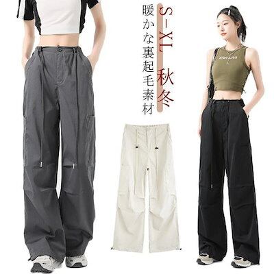 2025年新型カーゴパンツ 裏起毛 ウェストゴム ワークパンツ パラシュートパンツ レディース ストレートパンツ イージーパンツ カーゴパンツ ロングパンツ ボトム