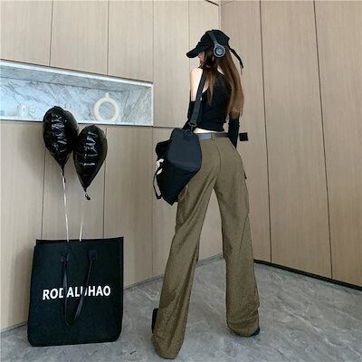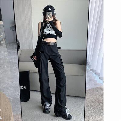 2024春夏 ダボっと可愛い ボトムス カーゴパンツ ロングパンツ ルーズ パンツ ボトム ズボン ルーズ メンズライク トレンド シンプル カジュアル ファッションズボン ブラック ダボかわ