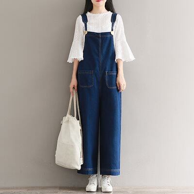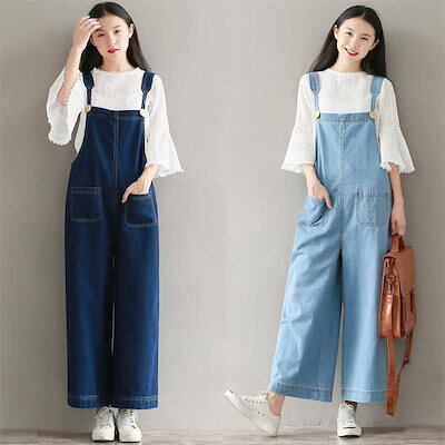パンツ サロペット レディース オールインワン オーバーオール デニム パンツ ワイドパンツ オーバーオール 9分丈 ゆったり 夏 秋 体型カバー 薄手 カジュアル 可愛い