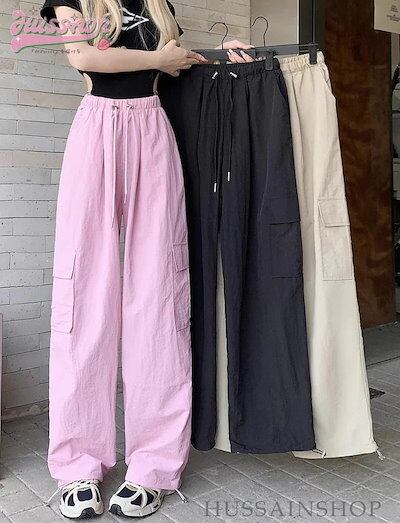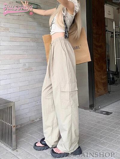 2024 春 ボトムス レディース カジュアルパンツ ウエストドローストリング ドロスト ハイウエスト レッグパンツ ファッション ズボンスポーティ カジュアル ラフ