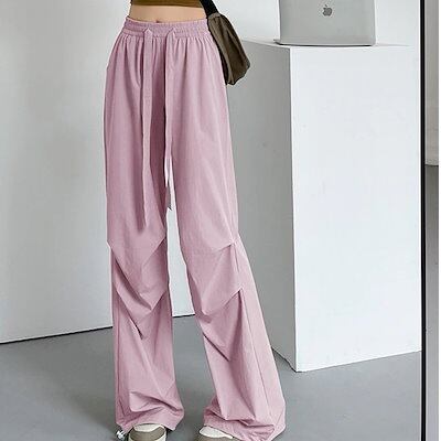アメリカンスポーツパンツ レディース 薄手 カジュアル パラシュートパンツ ワイドレッグ ハイウエスト 速乾 オーバーオールの女性ゆったりしたズボンスウェットパンツカジュアル