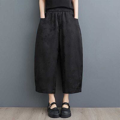 「ファットガール」 2024夏新品 九分丈 ワイドパンツ 花柄 大きいサイズ 体型カバー レディース ゴム ロングパンツ メガ割