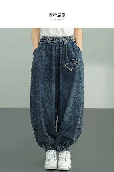伸縮性ウエストトライアングルパッチストジーンズルーズパンツレディースファットmmラージサイズブルマ