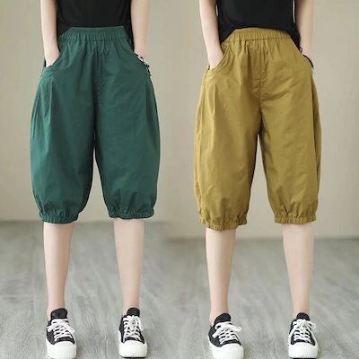 「ファットガール」 夏/薄手/ショートパンツ/レディース/ハイウエスト/ファイブパンツ/ゴムウエスト/ハーレムパンツ/ミドルパンツ メガ割30%までに制限