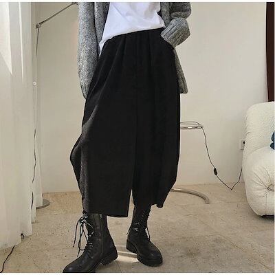 ワイドパンツ作パンツ九分丈レディースファッション体型カバーロングパンツズボン韓国ファッション
