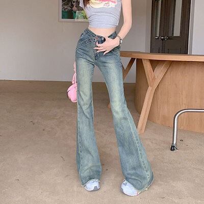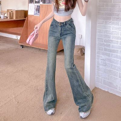 脚長効果! デニムパンツレディースパンツ ポケット ハイウエスト スリムフィット ジーンズ