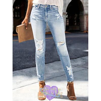 デニムパンツ スキニー レディース ストレッチパンツ ダメージ加工 ユーズド感 ブリーチ ヴィンテージ加工 スリムパンツ ボトムス カーゴパンツ