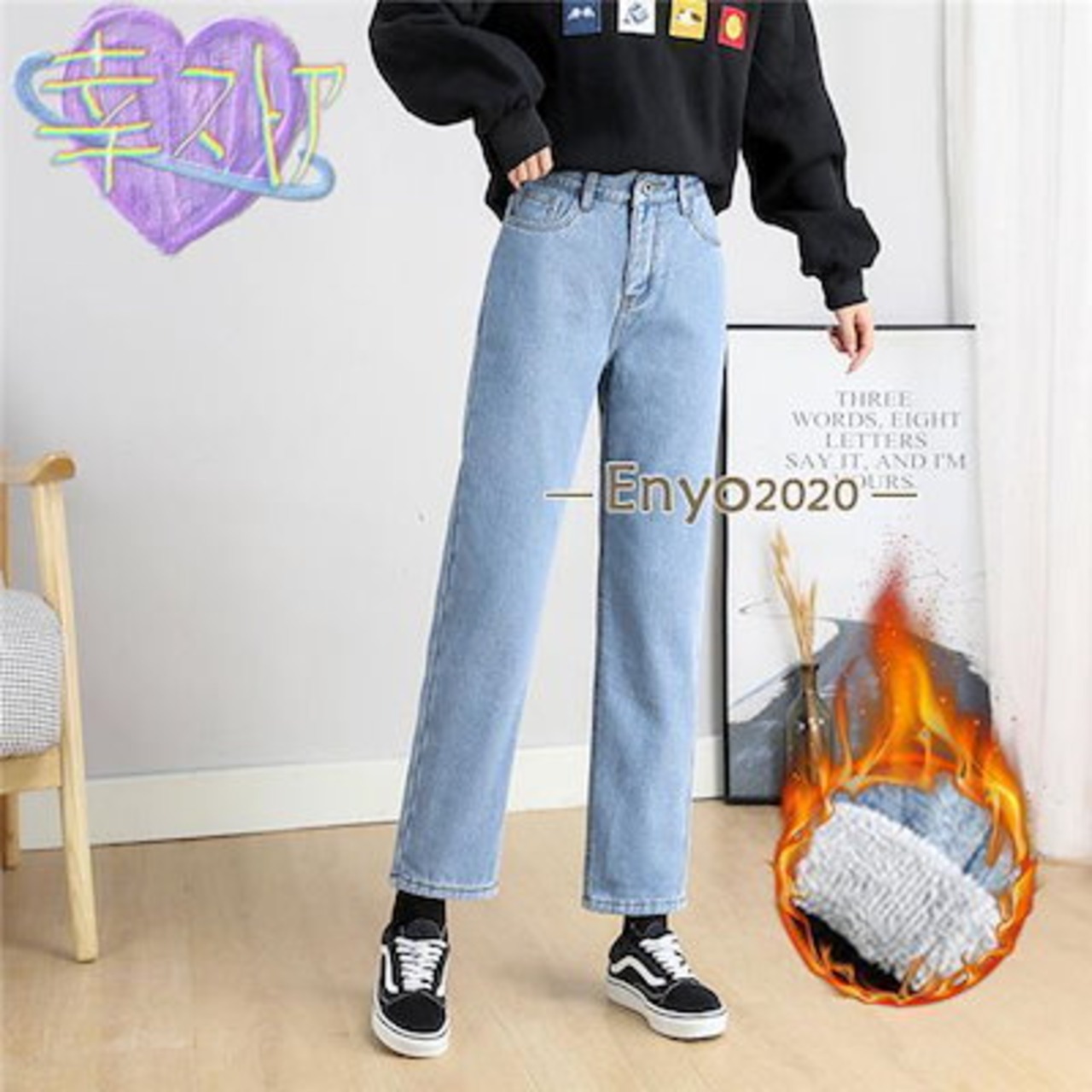 デニム パンツ レディース 裏起毛 あったか 極暖 美脚 ジーンズ ジーパン Gパン ロング ストレッチ 冬 防寒 暖かい 厚手 テーパード スリム