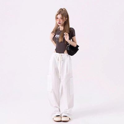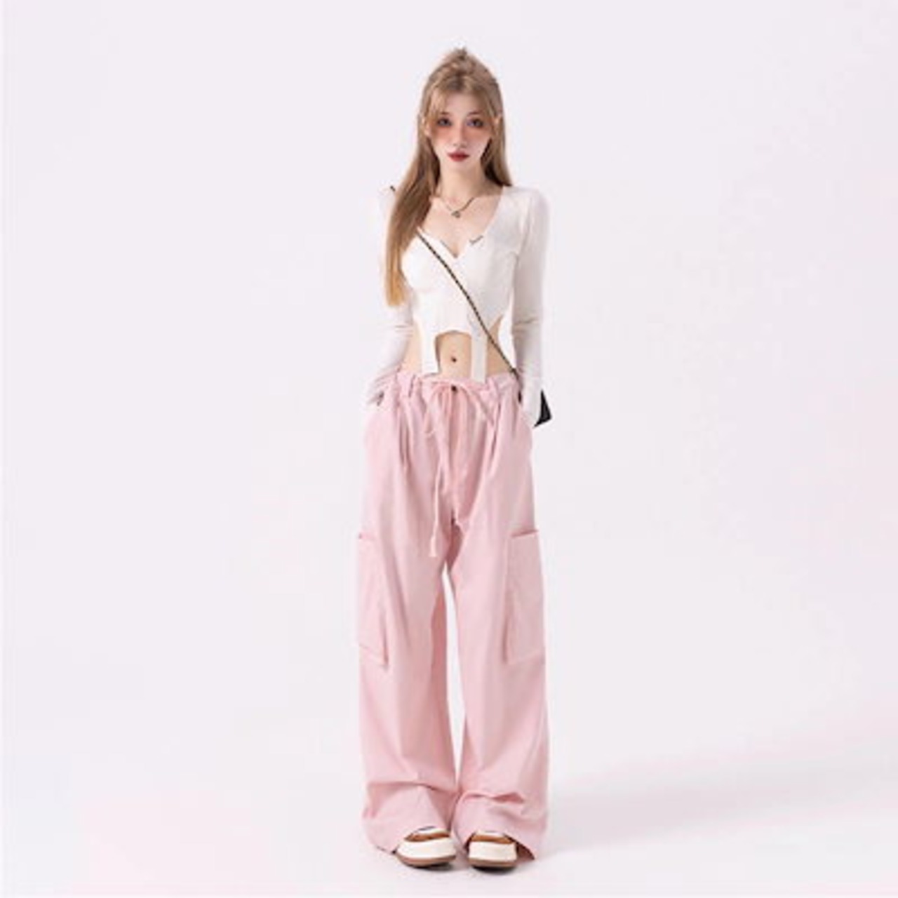 イン ロングパンツ ピンク ワイドパンツ カジュアル スリム ニッチ デザイン感 夏 レディース オーバーオール アメリカンスタイル