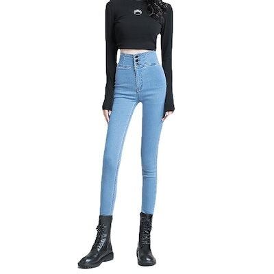 脚長効果!スキニーデニムパンツ ハイウエストジーンズ の小足がセクシーに見える高見えスリムタイツ ダメージ デニムパンツ ロングパンツ レディース ワイドパンツ