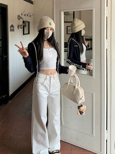 Qoo10限定 デニムパンツ レディース 白いワイドパンツゆったりジーンズ女性夏のハイウエストビッグサイズスリムパンツ ジーンズ ボトムス 美脚 ワイドパンツ