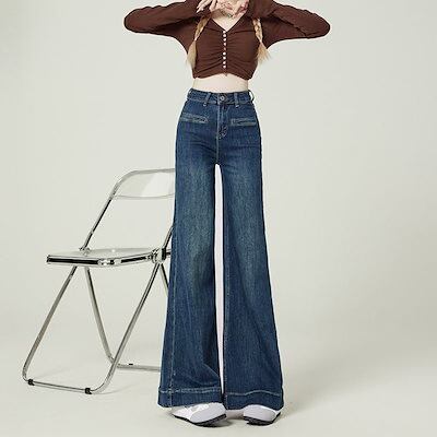 Qoo10限定 デニムパンツ レディース ワイドパンツレディース春秋2025年新作ハイウエストゆったりスリムパンツジーンズ ボトムス 美脚 ワイドパンツ