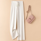ワイドパンツ 2025春新作ウエストゴムスリムニットストレートワイドパンツレディース