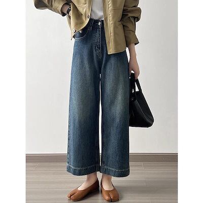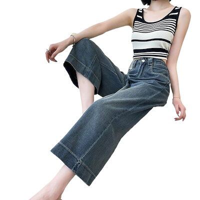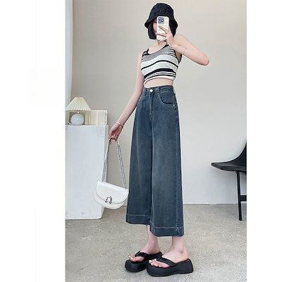 【2枚購入で 2oo円OFF!】 2025夏新作 薄手 ハイウエスト 9分丈 ワイドパンツ デニム レディース ゆったりシルエット 美脚効果 小柄な方におすすめ ストレートライン