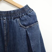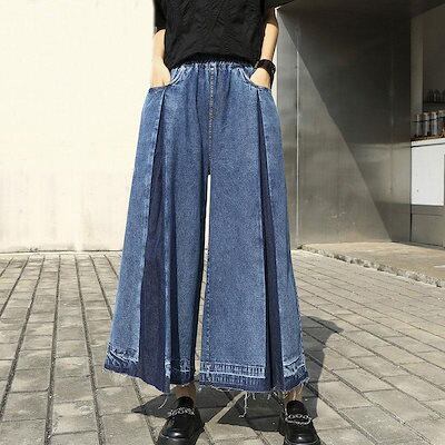 2枚購入で 2oo円FF!4月のワイドパンツ デニム 異素材切替 ボトムス レディース 9分丈 デニムガウチョパンツ ウエストゴム 大きいサイズ スカーチョ 切りっぱなし ストレート