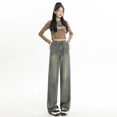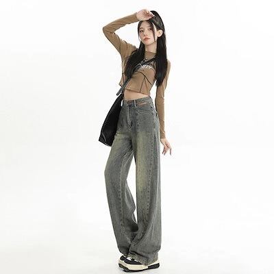 アメリカのハイストリートヒップホップホットガールワイドレッグジーンズレディースハイウエストルーズスリムストレートフロアレングスパンツトレンド