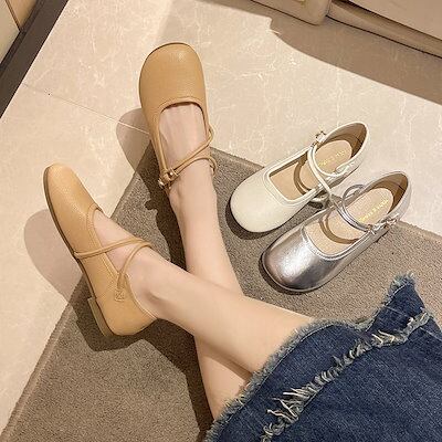 フラットパンプス ストラップパンプス パンプス 痛くない レディース スリッパ フラットパンプス PUレザー合皮 サンダル レディース 靴 歩きやすい 新スタイル ローヒール ヒール15CM 美脚