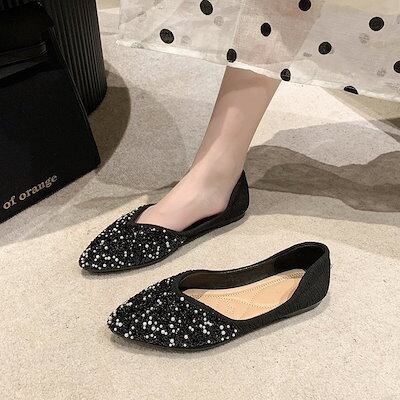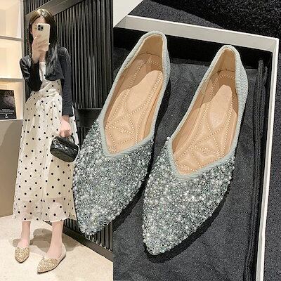 フラットパンプス ポインテッドトゥパンプス ローヒール パンプス プレーンパンプス バレエシューズ シンプル 走れるパンプス 通勤パンプス ラメパンプス 結婚式 パーティー 2way フラットシュ