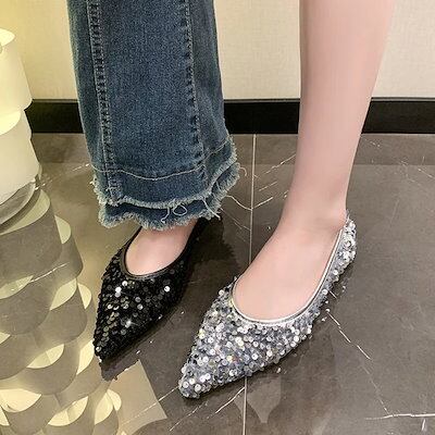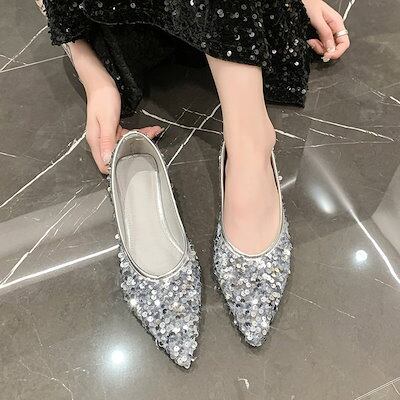 ウェディングシューズ ローヒール パンプス パーティー 美脚 キラキラ レディース フラットシューズ 結婚会 二次会 演奏会 発表会 披露宴 走れる ペタンコ 大きいサイズ 柔らかい 大人 旅行 太ヒ