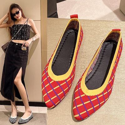 レディース メッシュパンプス ニットパンプス ローヒール ぺたんこ バブーシュタイプのフラットパンプス オールシーズン バレエシューズ パンプス メッシュパンプス ポインテッドトゥ 編み 編みサンダル