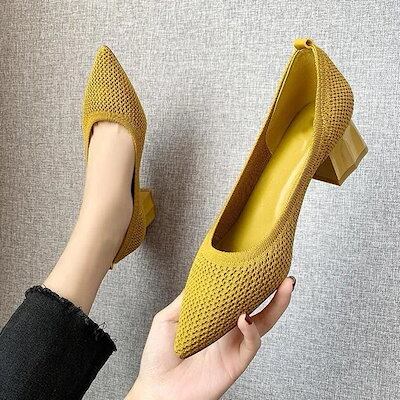 スタイルアップヒールパンプス ヒールパンプス 走れるパンプス ローヒール シューズ 新作 痛くない レディース 太ヒールハ ニット靴 ポインテッドトゥ イヒール 楽ちん 美脚