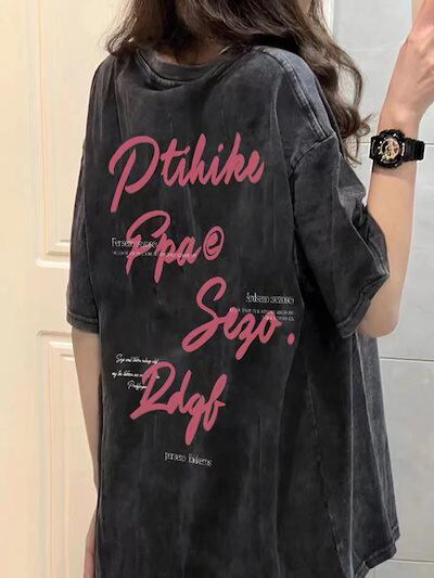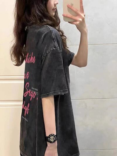 2024 春夏 可愛いトップス Tシャツ ラウンドネック ゆったり シルエット 丈長め 夏 赤 白 かわいい カジュアルサイズ加工風 韓国系ファッション レディース お出かけT
