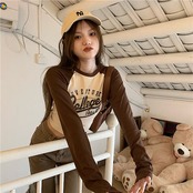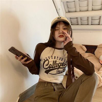 2024春夏 トップス 長袖 可愛い おしゃれ フィット ラウンドカラー 重ね着丈 スリーブ 女っぽ Tファッション フェミニン きれいめ 色っぽ プリント