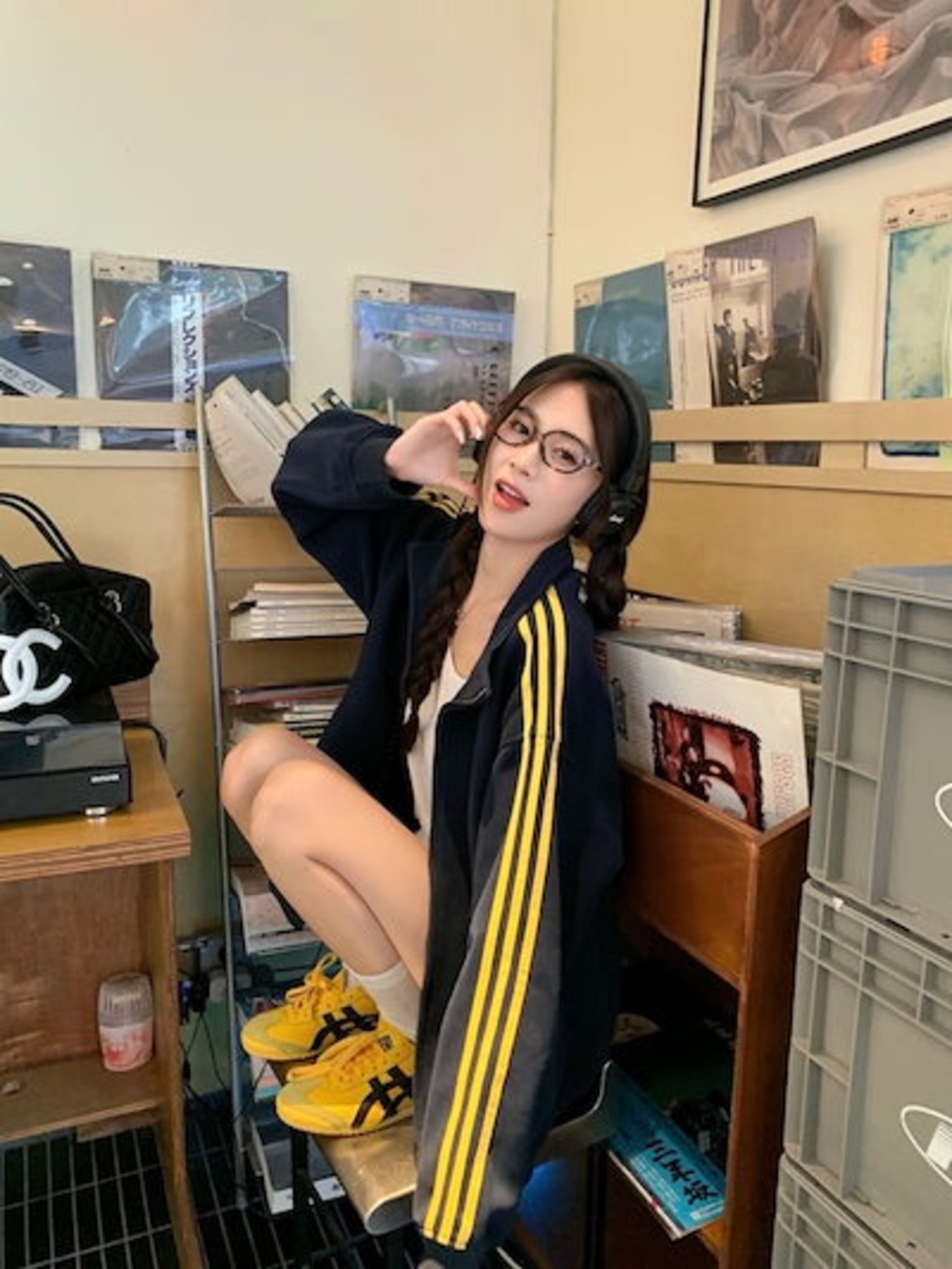2024 秋冬トップス チャック 長袖 細見え 秋 黄色 イエロー ネイビー おしゃれ かわいい シルエットカジュアルサイド 韓国系 ファッションサイズレディース お出かけトラック