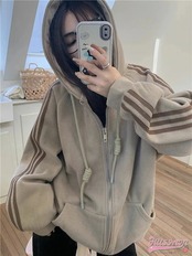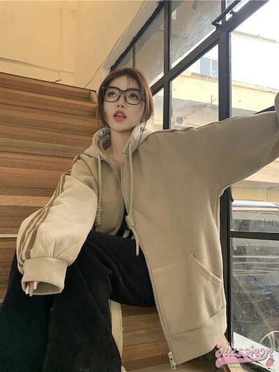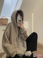 選べる2タイプ 薄手 厚手 裹起毛 パーカー フード付き羽織りスタイルアップ女っぽ きれいめ 大人っぽ 上品 サイズゆったりカジュアルトラックストリートシルエットスリーブ通学 学生ファッション秋冬春