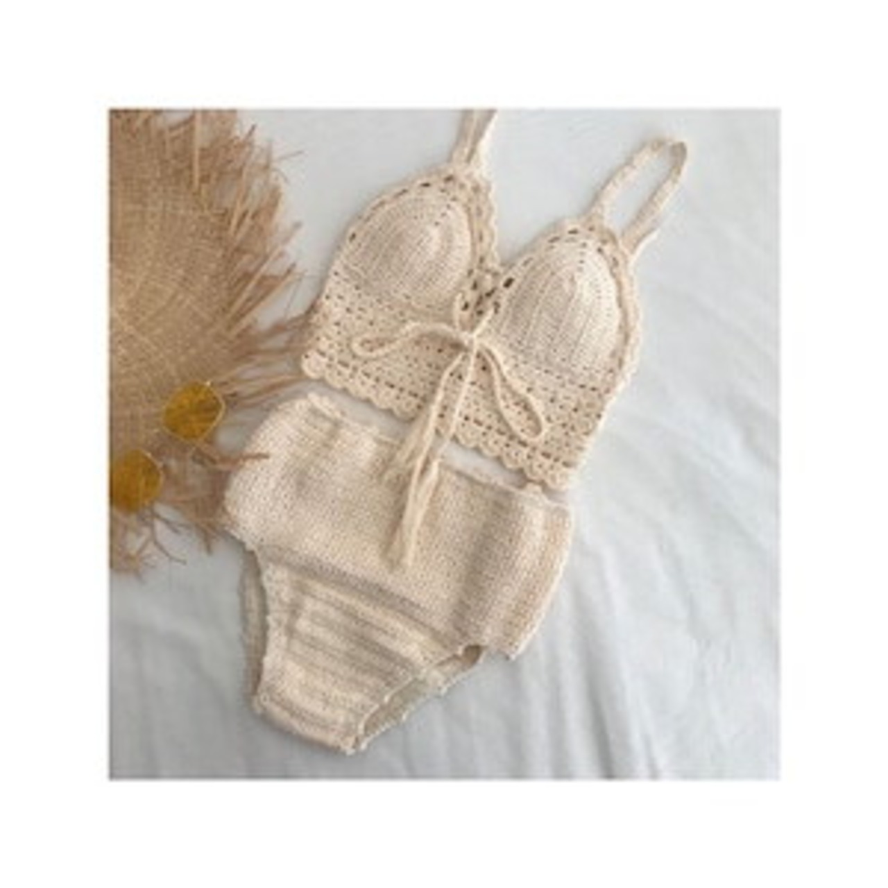 2024 水着 ビキニ レディース 女の子 ニット 体系カバー セクシー きれいめ クロシェ 水着 ニットビキニ 10代 20代 30代 スウィムウェア ベージュ 編み込み風 レース かっこいい 韓国