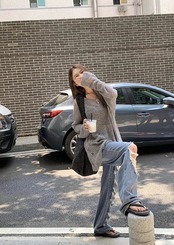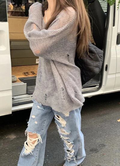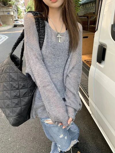 2024春夏 長袖 ニット プルトップスストリートカジュアエコルシルエットクルーネック加工色っぽ 女っぽ カジュアル 大人っぽ 上品 サイズフェミニンゆったりカジュアル レディースゆったり秋冬春