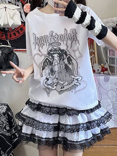 2024 夏 韓国 トップスかわいい Tシャツ ロング丈 ファッション半袖スリムフィット サイドファンタジーシルエット ゆったり 休日レディースサイズ韓国系_おしゃれ カジュアルメンズライクT