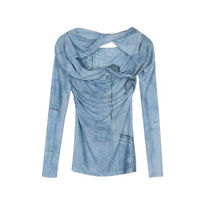 2024 夏 韓国 女度を格上げ tシャツ ファッション トップス 薄手 韓国系 長袖 薄手フィット プリント レイヤード 重ね着 肌見せ 女っぽハイフレンチタイト丈 レディース T